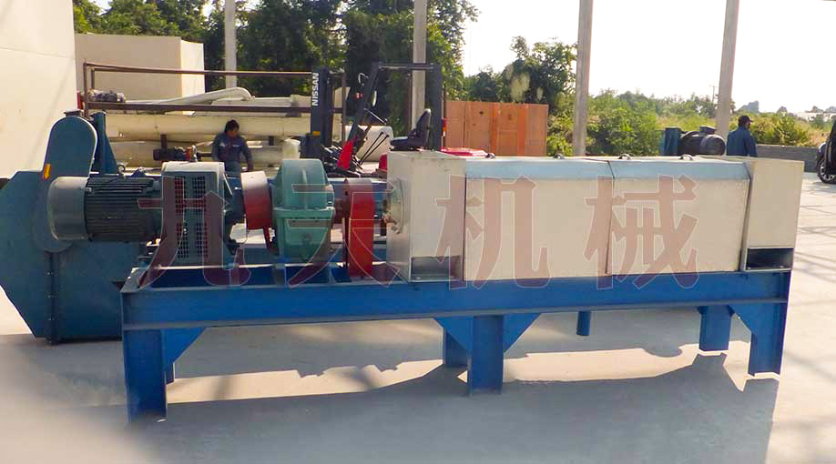 調(diào)速電動(dòng)機(jī)運(yùn)轉(zhuǎn)正常后,物料從進(jìn)料箱均勻加入,進(jìn)機(jī)后的物料在螺旋旋轉(zhuǎn)葉片推動(dòng)下沿軸向前進(jìn),前進(jìn)過程中物料受變化的螺距和調(diào)節(jié)檔板的作用,形成巨大的擠壓力,使物料在外力作用下進(jìn)行機(jī)械脫水,水份通過篩網(wǎng)在出水口處排出,脫水后的物料在出料箱處排出。