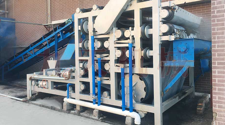 中藥渣帶式壓榨脫水機通過適當的預處理,重力脫水和機械脫水,去除水分并將加工過的材料作為中藥渣濾餅排出。在過濾處理過程中,帶上的濕藥渣通過重力脫水區和帶輥脫水區,在那里它們很快脫水。縮短和減小接觸角確保了壓力和剪切的最佳組合,大大提高了固體含量和脫水效率。電磁調節和張緊系統的獨特設計解決了中藥渣壓榨脫水中的常見問題。